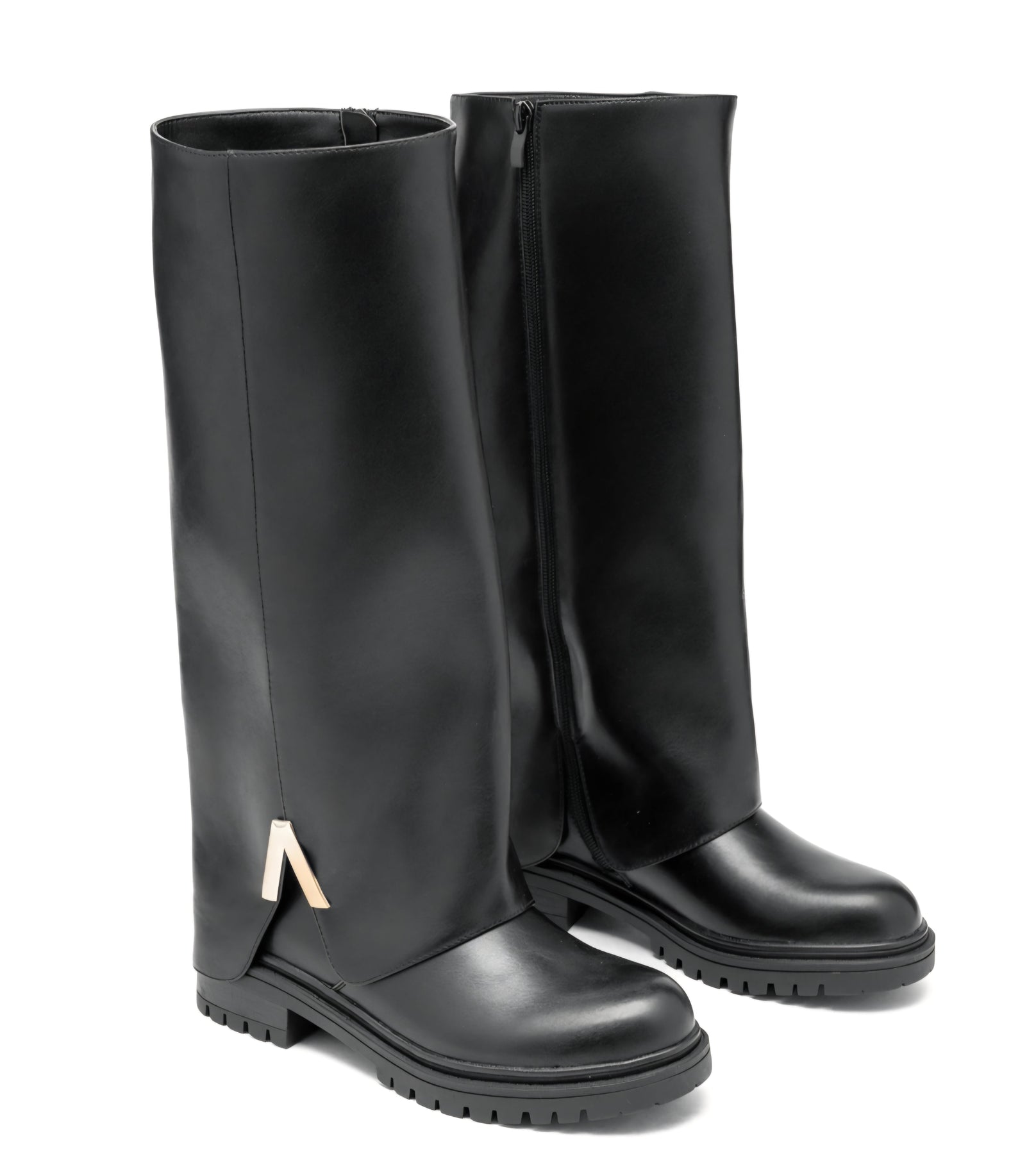 Damen-Kniestiefel aus Kunstleder mit umschlagbarem Schaft und profilierter Sohle
