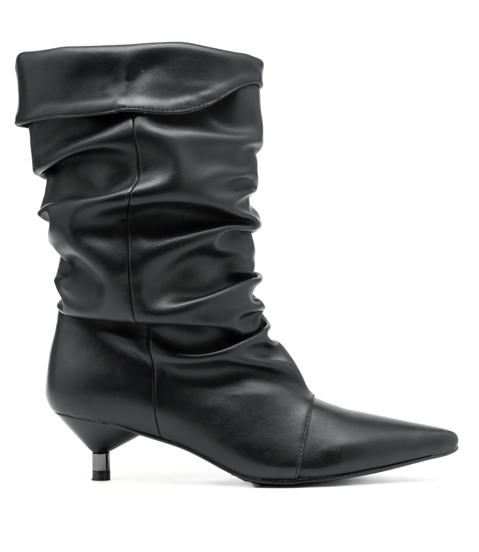 Plissierte Ankle Boots aus Kunstleder – niedriger Stilettoabsatz