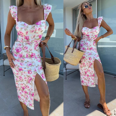 Langes Kleid mit Blumenmuster Weiß