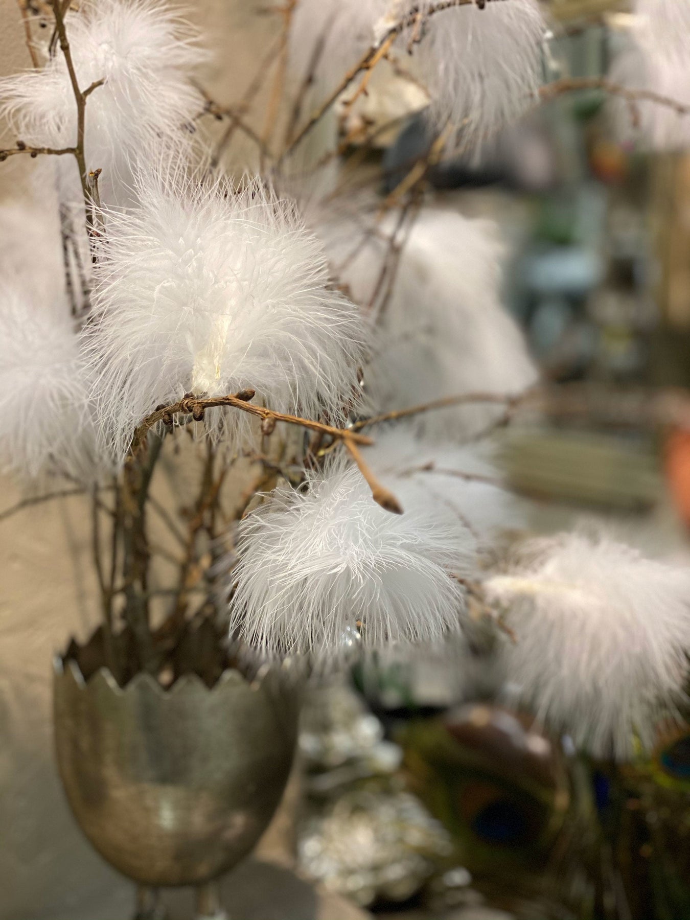 Feder "Pudervippa" auf Drahtstahl 12er Pack Weiß
